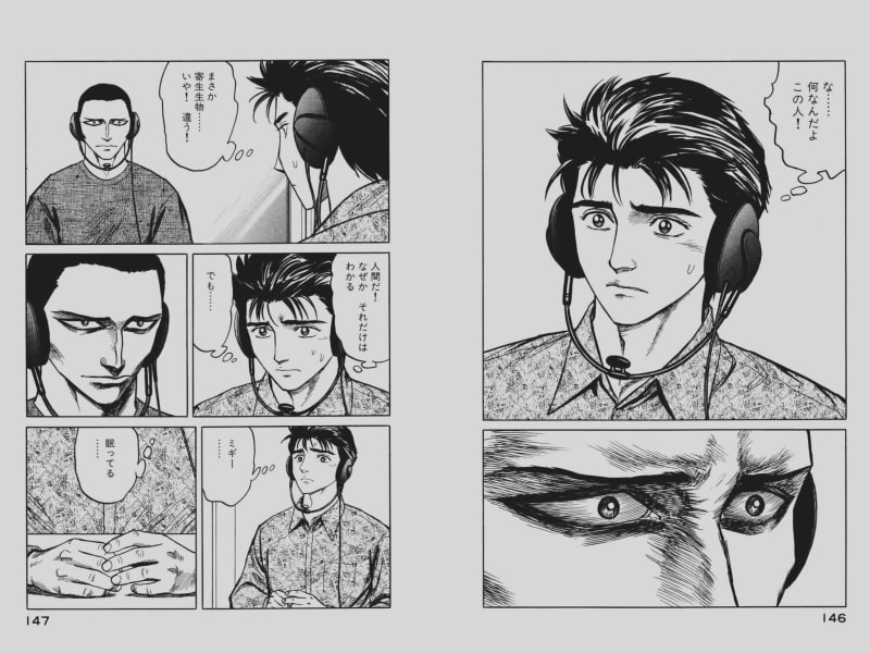 浦上には人間に擬態した「パラサイト(=人喰いの怪物)」を見抜く動物的なカンがあり、その能力を調査する研究機関において主人公である新一と対面することになります。