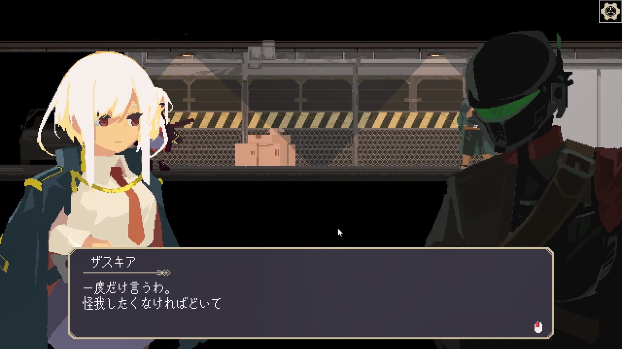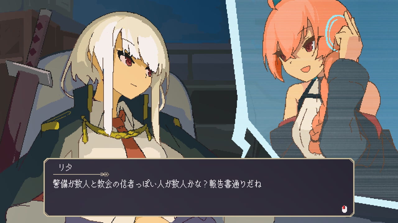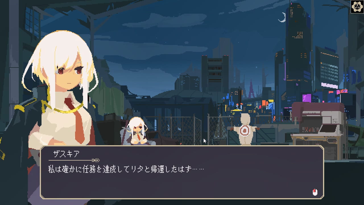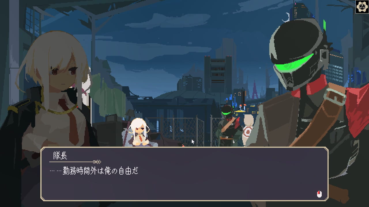 ピクセルアートで描かれる荒廃した世界を舞台としていて、一種の近未来SF的な世界観を有しています。